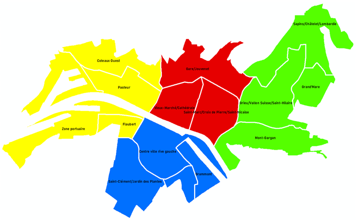 | Centre-ville rive droite | Rive gauche | Hauts de Rouen | |