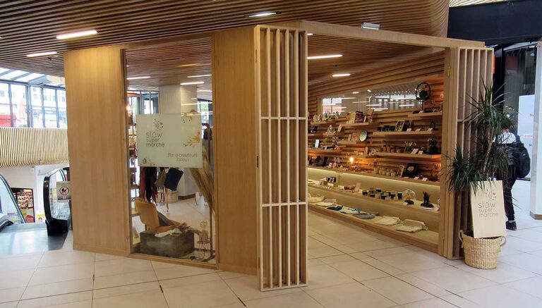 Ainsi est né Slow super marché qui a pris racine au cœur du centre commercial, dans le hall accessible par la rue Saint-Lô.