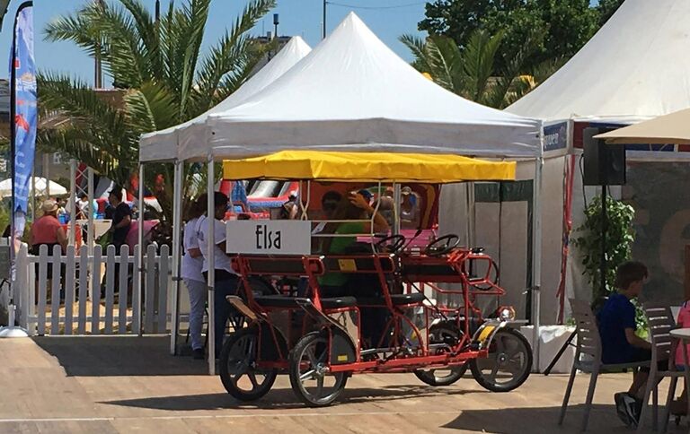 De 3 à 6 places, ce petit engin à pédales, non polluant et qui ne fait aucun bruit, a été importé dans la capitale normande par Cédrick Campet, suite à une balade familiale en rosalie en vacances.