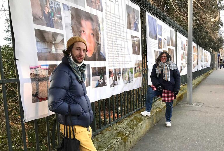Une exposition à ciel ouvert est proposée jusqu’au jeudi 18 mars 2021 sur les grilles du square André-Maurois. Douze bâches qui racontent le quotidien de réfugiés, demandeurs d’asile, « dublinés », sans-papiers ou apatrides.