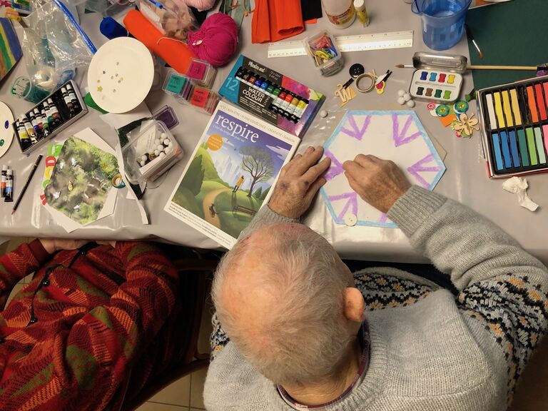 Autre proposition de l’association, des séances d’art-thérapie itinérantes à destination des seniors et des aidants familiaux. « Mobil’Art est né d’un accident de parcours. Après des emplois de graphiste, chargée de projet culturel et artistique, chargée de communication, pour des petits communes rurales en Isère, j’ai connu l’épreuve du cancer. J’ai repris confiance en moi en créant. Établie en Loire-Atlantique, j’ai poussé les portes d’un atelier de sculpture à Nantes et ça a été une révélation. Je suis devenue céramiste raku. Je me suis formée à l’art-thérapie, et j’ai fait mes premiers pas dans une unité Alzheimer. »